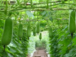 Bí xanh thuộc họ bầu bí, thân dây leo, thường trồng giàn, được dùng như một loại rau trong các bữa ăn.
